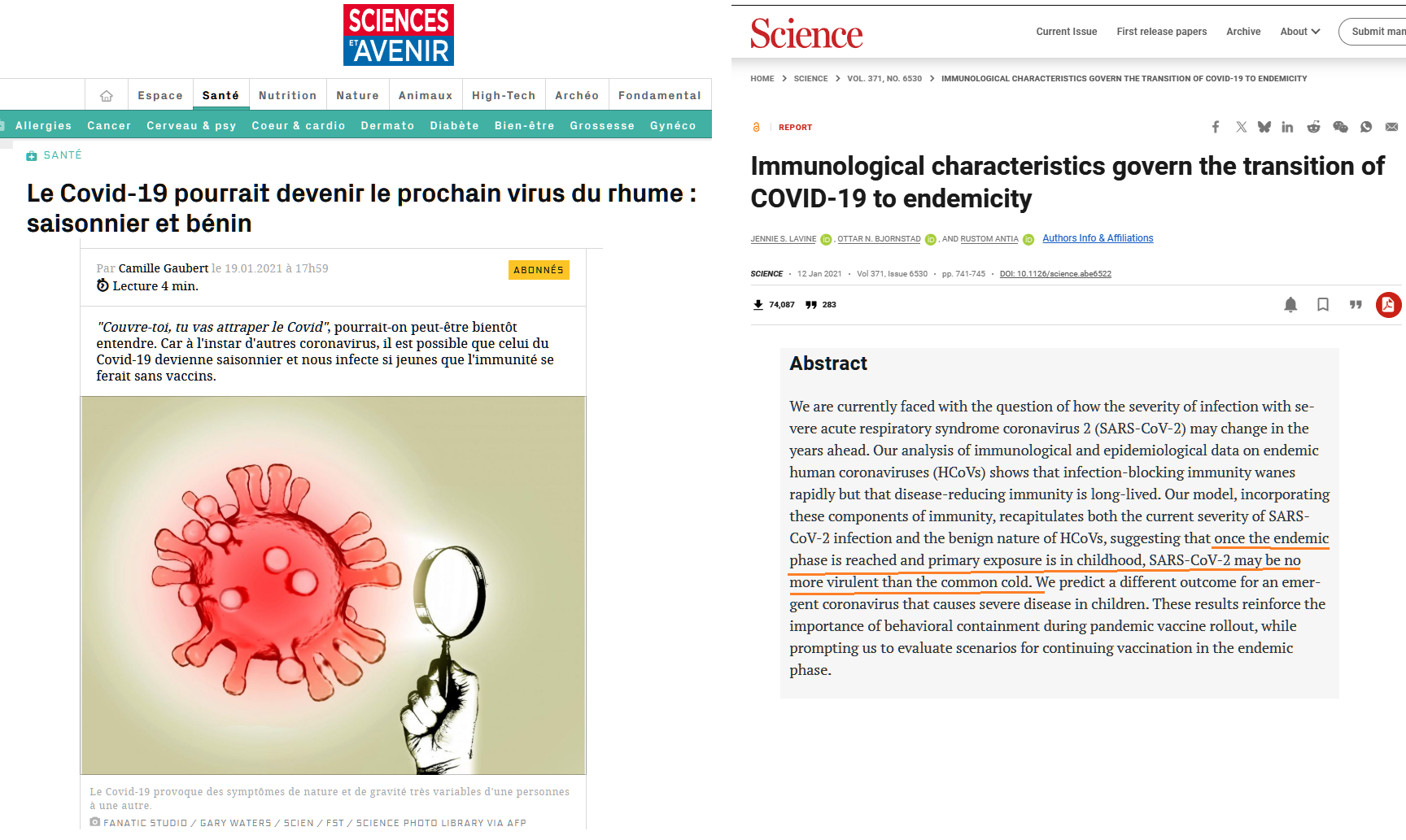 sources : article de Science et Avenir qui se base sur cet article de Science (2021)