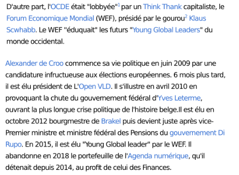 De Croo n’est plus un Young Global Leader du WEF ↱ : sa page a été retirée du site